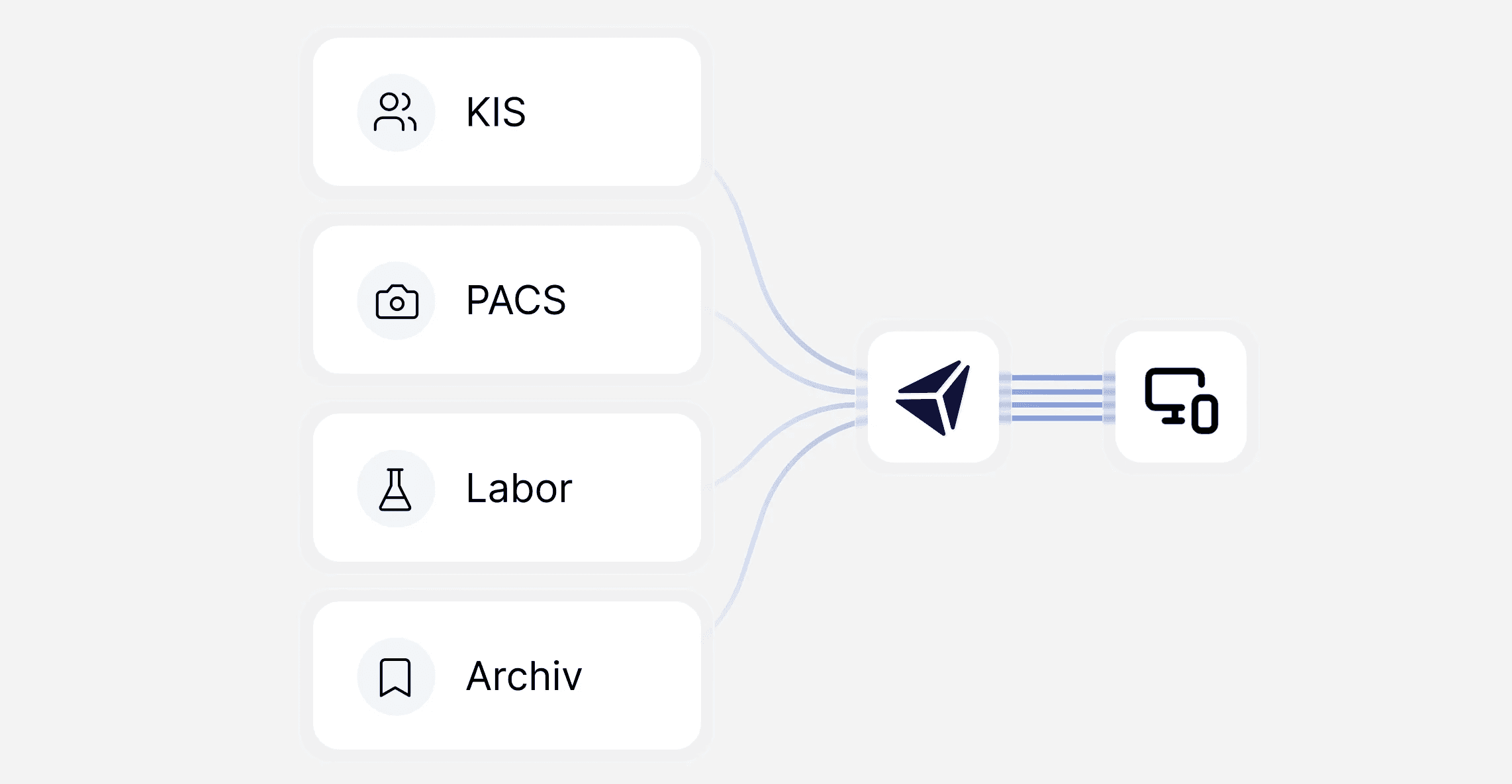 TrioMed integriert zentrale klinische Daten aus bestehenden Systemen wie KIS, Labor, Archiv und Bildgebung über etablierte Standards wie HL7 und DICOM. Die Informationen werden kontinuierlich synchronisiert und in einer einheitlichen Oberfläche bereitgestellt – unabhängig vom Zustand der Primärsysteme.